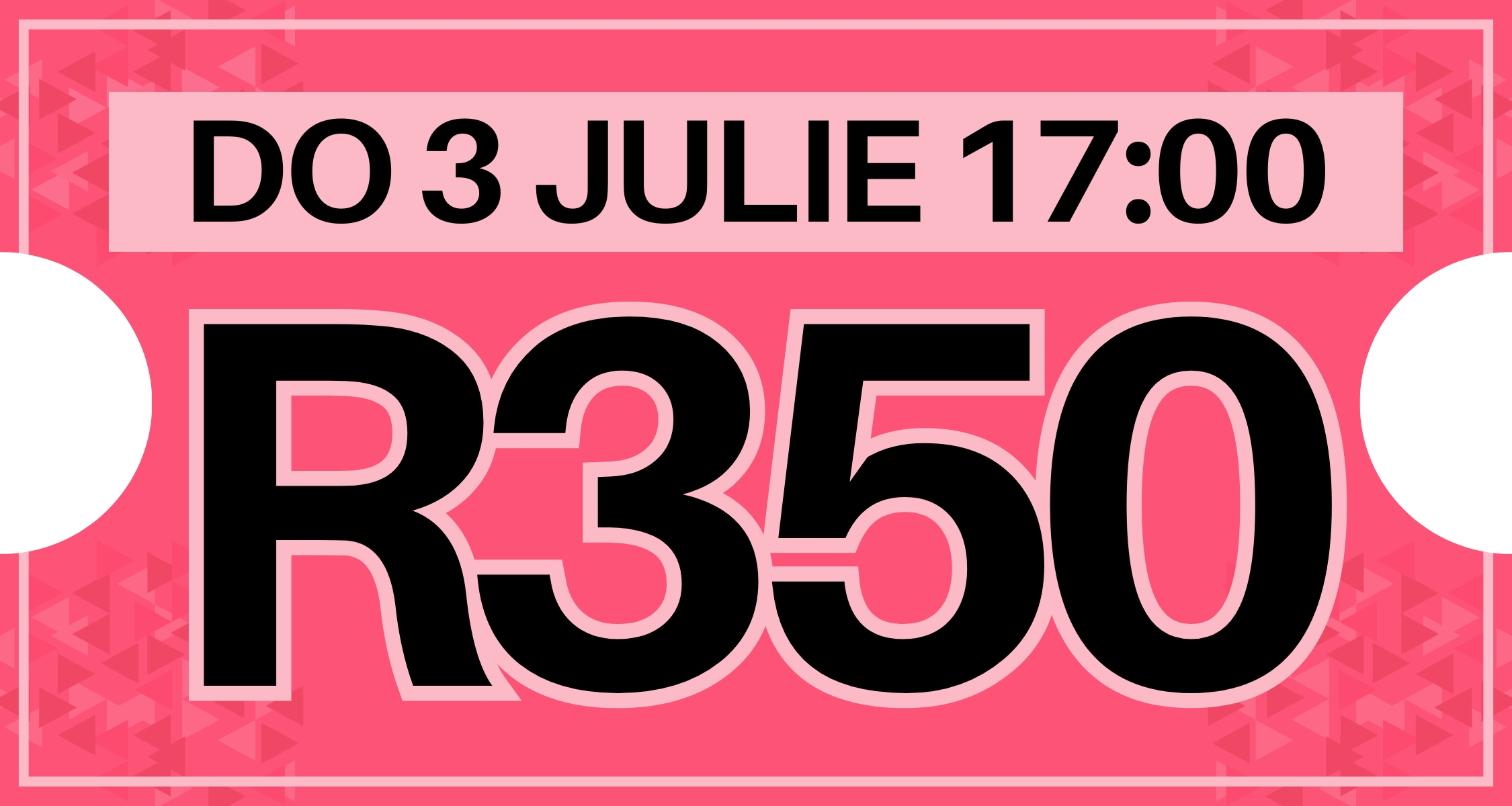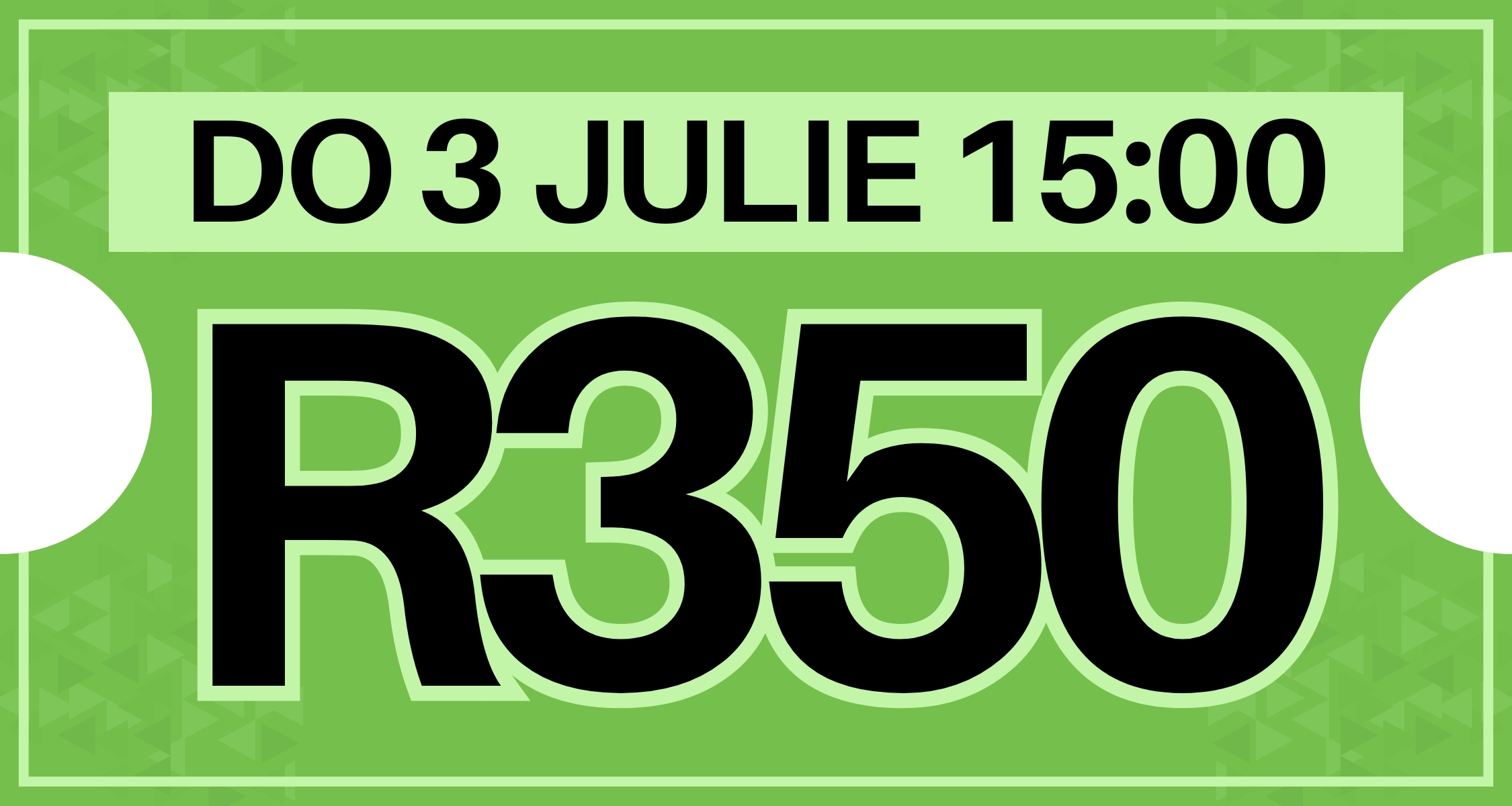Prys: R350 (ligte verversings en drinkgoed ingesluit)