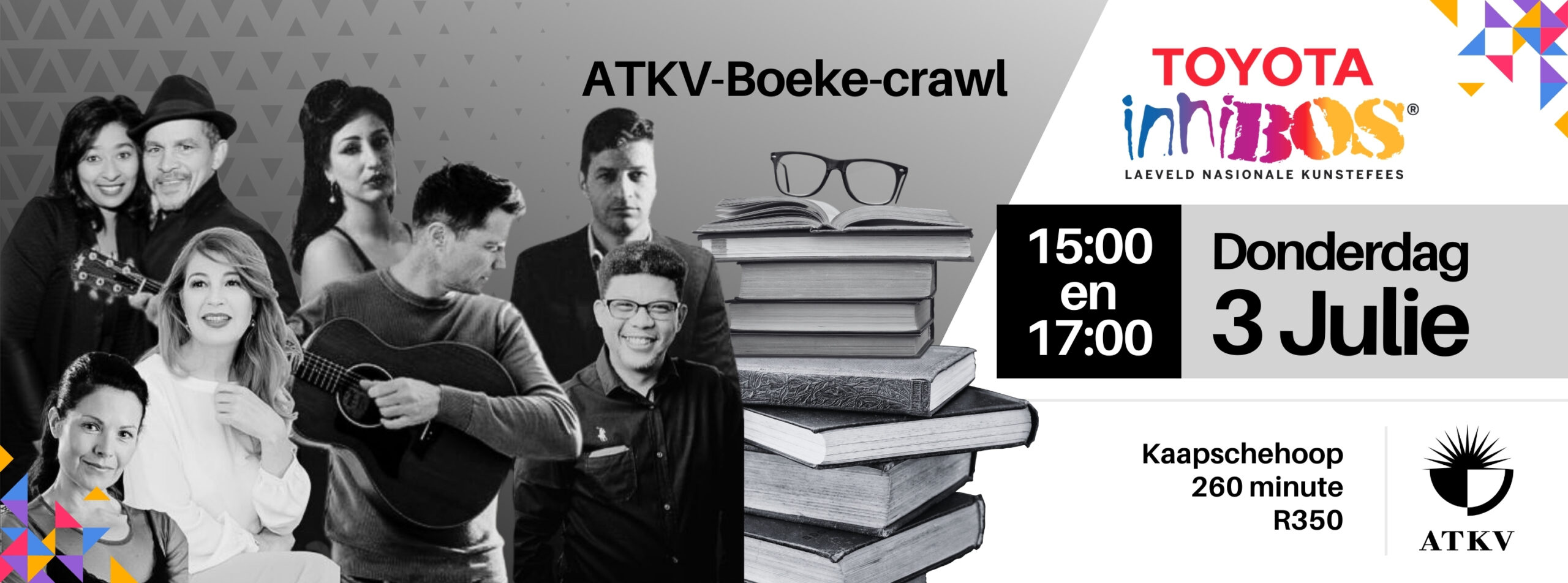 Die ATKV-Boeke-crawl is ʼn lekkerte vir elke feesganger wat hom verwonder oor die Afrikaanse taal wat vanjaar sy 100ste bestaansjaar as amptelike taal vier. Kom luister na die krag van die woord, hetsy ʼn fragment uit ʼn roman, ʼn kortverhaal wat jou laat regop sit, ʼn trefseker gedig of ’n lied met ’n liriek wat jou aan die hart gryp. Feesgangers kry ʼn doppie-koppie met ʼn knertsie Van Loveren muskadel en ʼn serp om die ergste koue van die mistieke dorpie, Kaapsehoop, te besweer.